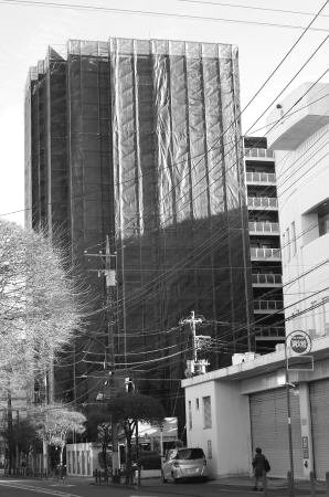 1枚目、河辺駅近くのビル、塗装の塗りなおし?2枚目、河辺駅北口交差点の