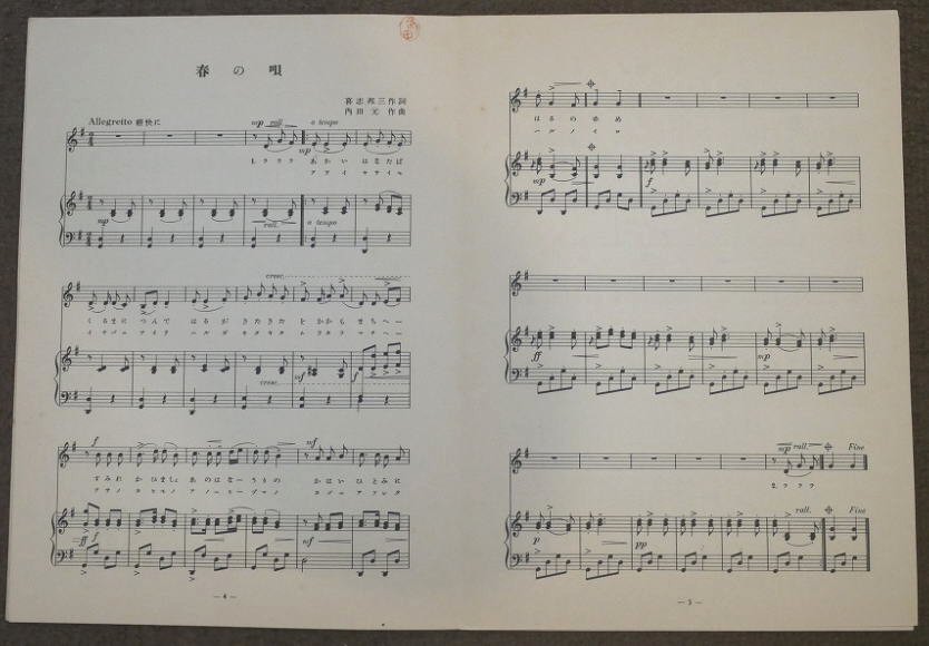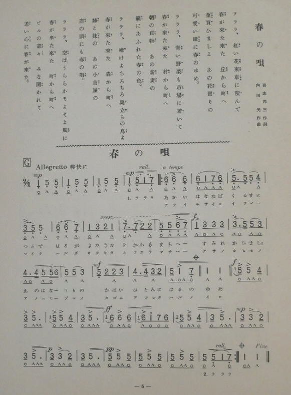 国民歌謡「春の唄」(「牡蠣の殻」)の楽譜