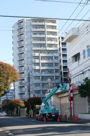 、一番最初の写真の塗装中(3年前)だったマンションです。3枚目、