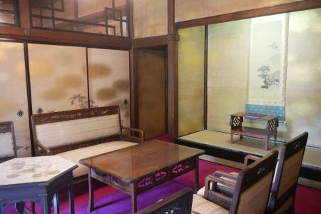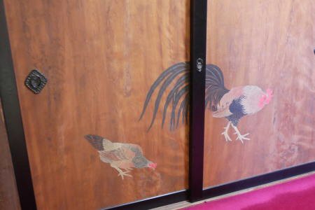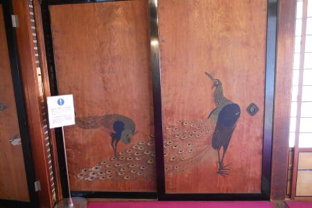 三井八郎右衛門邸(2)、4、6枚目は丸山四条派による杉戸襖に書かれた尾長鶏、孔雀の絵